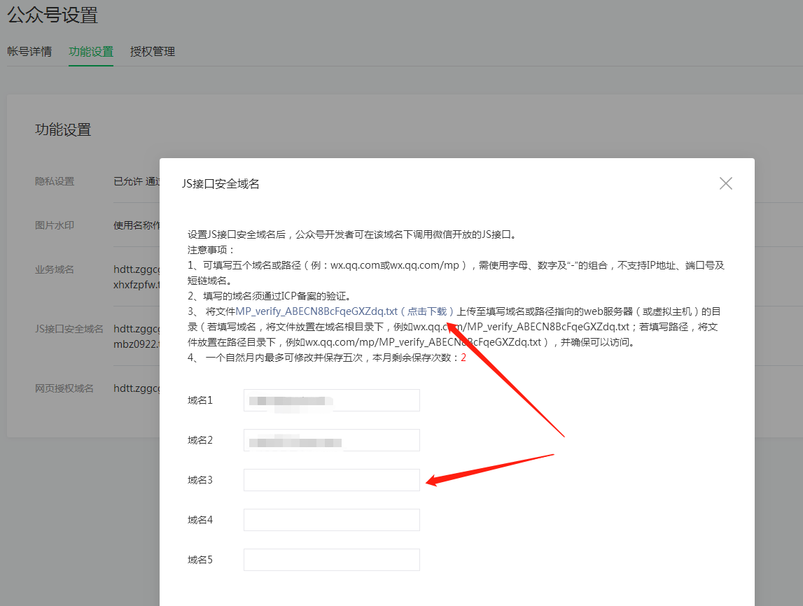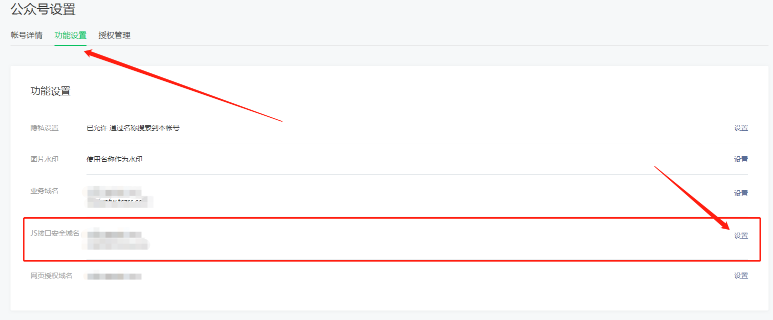 2、功能設置 -> JS接口安全域名